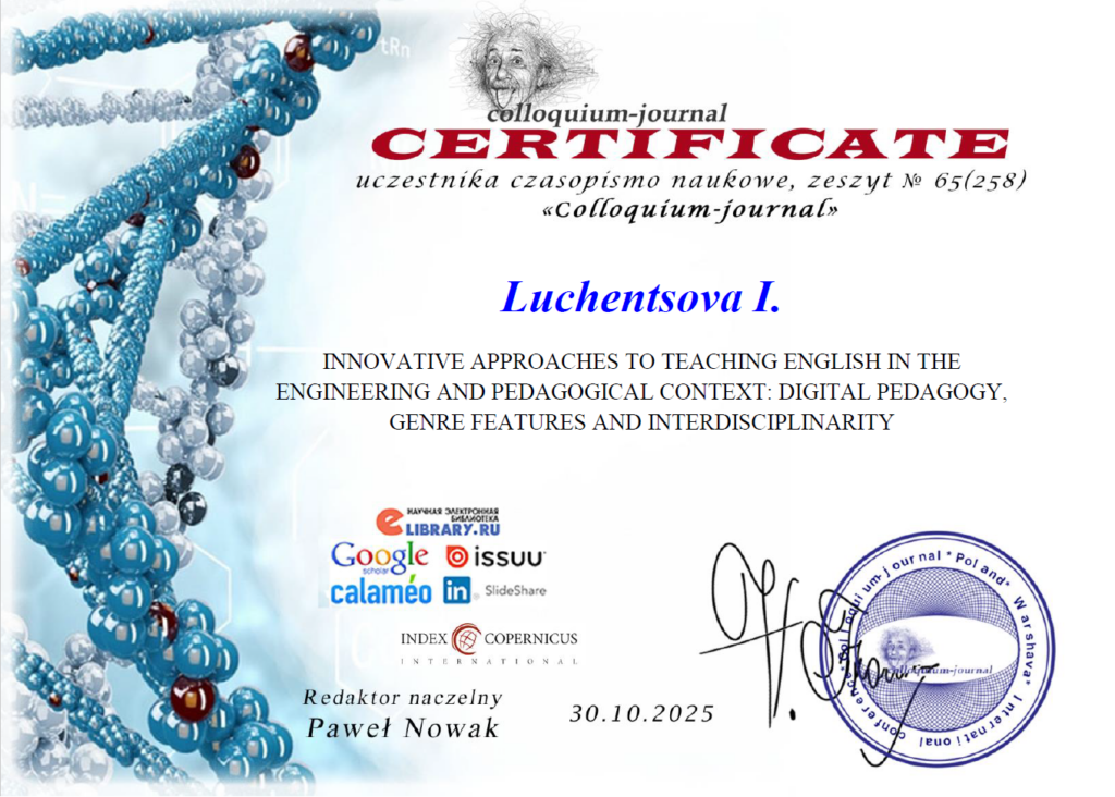 Крім того, науково-педагогічні працівники кафедри ведуть активну наукову діяльність, публікують результати досліджень у фахових і міжнародних наукових виданнях, беруть участь у підготовці колективних монографій, навчально-методичних посібників та електронних освітніх курсів. Така системна робота сприяє підвищенню наукового потенціалу кафедри, її інтеграції в міжнародний академічний простір та забезпеченню високої якості освітнього процесу.